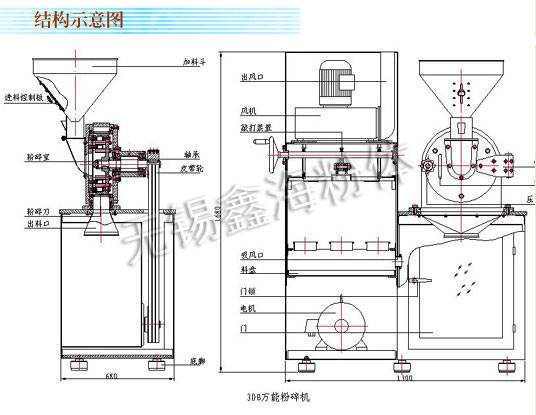30BIV.V.VI 100-300kg/h 3800r/min 10mm 60-120目 5.5KW 1.5KW 1200×650×1650