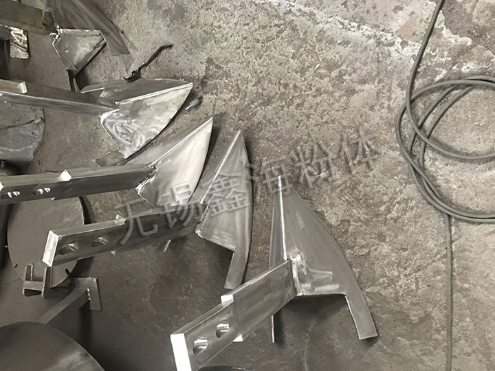 飛刀組由多把飛刀組成,通過電機直接驅(qū)動,安裝在筒體側(cè)面,防止粉塵進入軸承,飛刀軸采用多道密封結(jié)構(gòu);